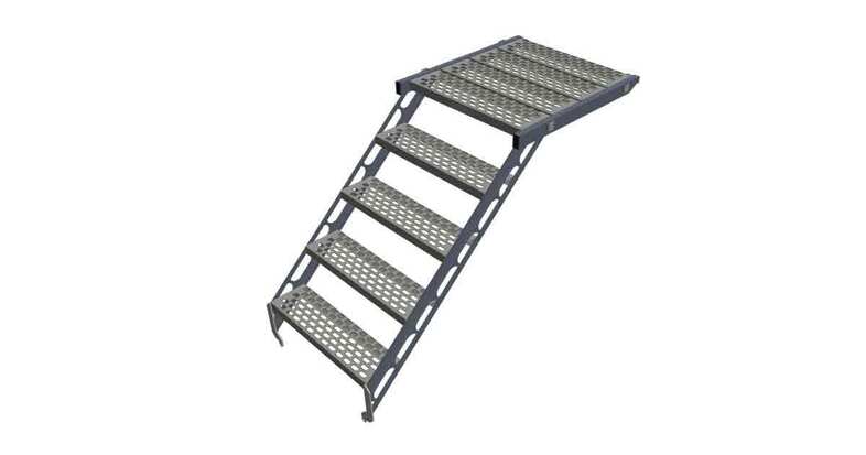 Den opdaterede version af trappeløbet på 1 m er 25% lettere, og har den fordel at den følger trinkonfigurationen og højden på de andre trappeløb i det symmetriske trappetårn. Dette gør trappeløbet mere ergonomisk at bruge i forhold til sin forgænger. Trappen er typegodkendt og opfylder kravene til lastklasse samt kravene til adgangsveje i henhold til standarden.
