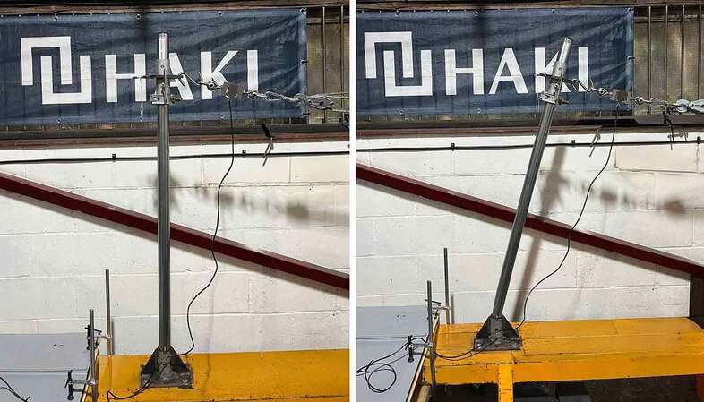 Afprøvningerne fokuserer på vindbelastninger og statiske belastninger for at simulere fald mod rækværket. HAKI gennemfører en række trækprøver for at vurdere stolpernes styrke og tilladte belastninger for rækværksnettet samt vindbelastninger. Dette gør det muligt at identificere potentielle konfigurationer, der fungerer optimalt under virkelige forhold.