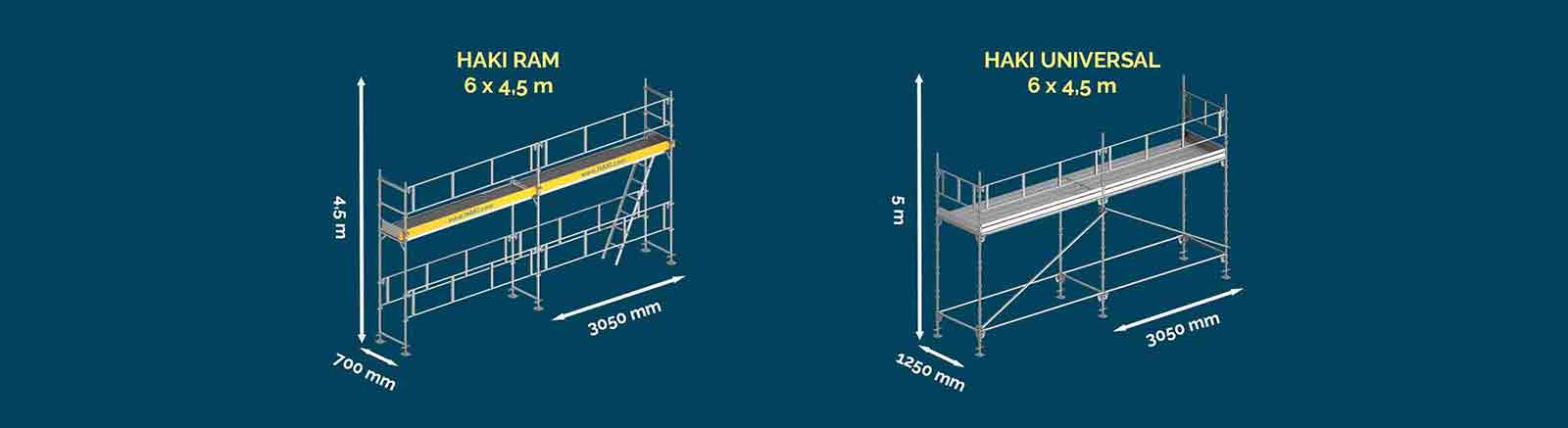 Dimensionerne på vores stilladser dækker arbejdsområdet og er angivet i længde x arbejdshøjde. For vores rammestillads inkluderer arbejdshøjden de maksimale opjusterede fodspindler, og for modulstillads er dimensionerne angivet i længde x arbejdshøjde eksklusive opjusterede fodspindler.