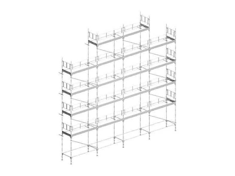 Blandt andet gør søjler og horisontalstag det muligt at skabe et næsten uendeligt antal forskellige strukturer. Det betyder, at stilladset nemt kan tilpasses i højde, bredde og til forskellige vinkler, for eksempel ved døre og altaner, og monteres rundt om hele facaden.