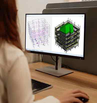 HBS giver mulighed for flere forskellige monteringsmetoder, afhængigt af hvad der passer bedst til den pågældende bygning. Den kan bygges op på jorden og løftes på stedet med kran, bygges på stedet og samles ved hjælp af vores udrulningsmetode uden behov af kran. Den kan også samles først på et midlertidigt stillads, og derefter kan stilladset demonteres.